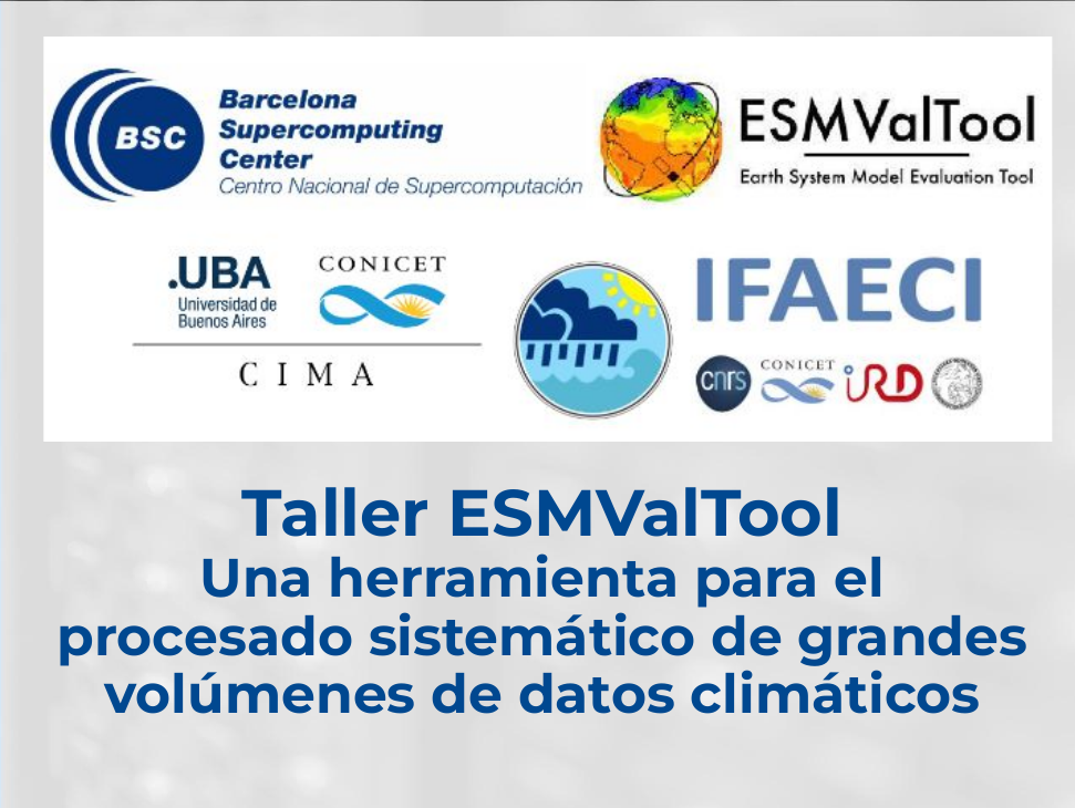 Los días martes 14 y jueves 16 de noviembre de 2023 se realizó el Taller «ESMValTool: Procesado sistemático de grandes volúmenes de datos climáticos» con el auspicio del Departamento de Ciencias de la Atmósfera y los Océanos (DCAO), Centro de Investigaciones del Mar y la Atmósfera (CIMA) y el Instituto Franco-Argentino de Estudios sobre el Clima y sus Impactos (IFAECI).